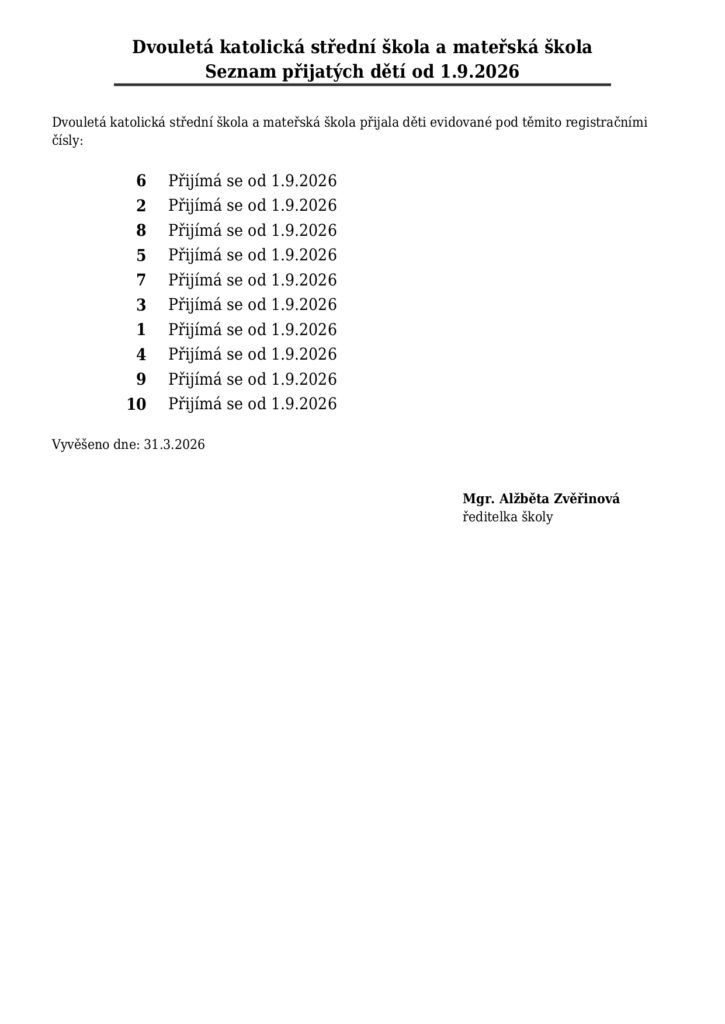 30.03.2026 / Zveřejněno v Aktuality mateřské školy, Oznámení, Přijímací řízení mateřská škola